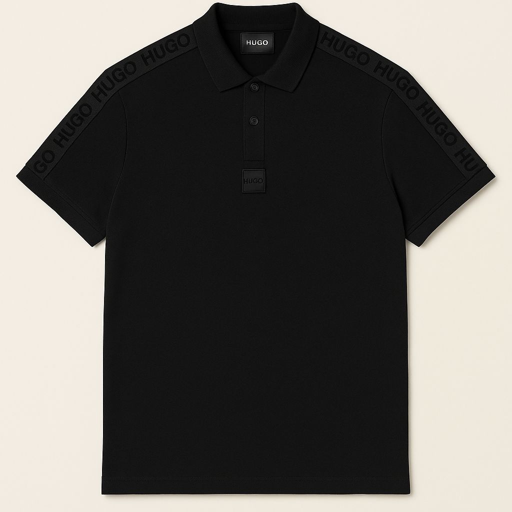 Bold, modern, and effortlessly sharp — this HUGO Red Polo Shirt is a standout piece from the brand’s signature collection. Tailored in soft cotton pique, it features a classic polo collar with a 3-button placket, elevated by black logo tape along the shoulders and sleeves. The chest carries the contrasting HUGO logo embroidery, while the placket is accented with a rubberized HUGO badge for a premium touch.