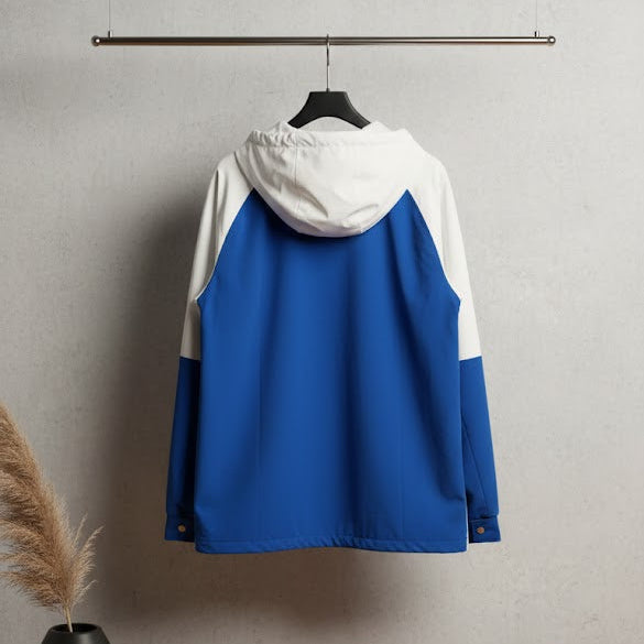 Elevate your outerwear collection with this dynamic and versatile blue and white zipper jacket. Engineered for both style and functionality, this jacket features a striking color-block design that merges crisp white with a vibrant royal blue, creating a modern and athletic aesthetic. Crafted from a durable, weather-resistant fabric, it’s perfect for transitional weather, offering protection without compromising on sleek design.