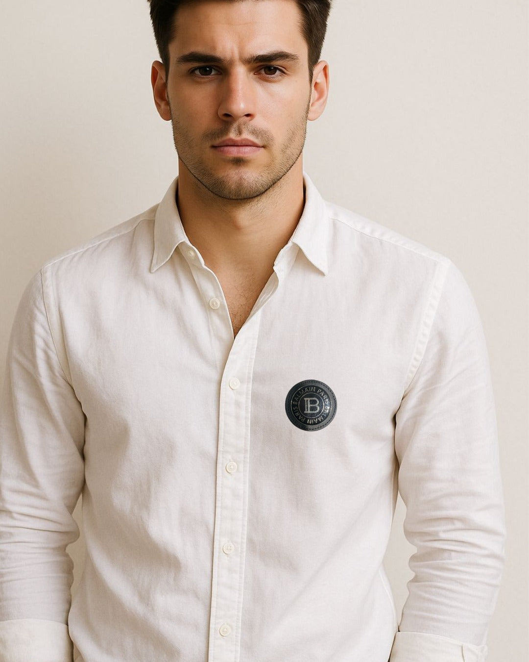 A bold statement piece from Balmain Paris, this Black Long-Sleeve Shirt redefines luxury with modern sophistication. Crafted from fine cotton poplin, it features a sleek tonal button placket and is distinguished by the iconic Balmain Medallion Crest patch on the chest — a true mark of Parisian heritage. Perfect for evening occasions or upscale casual looks, this shirt radiates power and elegance.